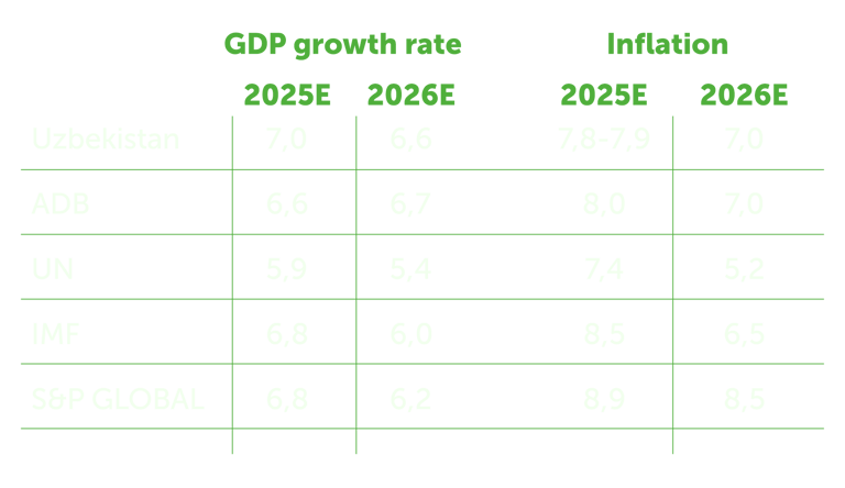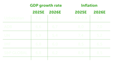 Хотя траектория инфляции демонстрировала восходящий тренд в первом квартале из-за проведения реформ по либерализации в энергетическом секторе, Центральный банк Узбекистана внедрил режим таргетирования инфляции, ставя цель достичь уровня в 5% в год ко второй половине 2026 года в условиях жесткой денежно-кредитной политики.